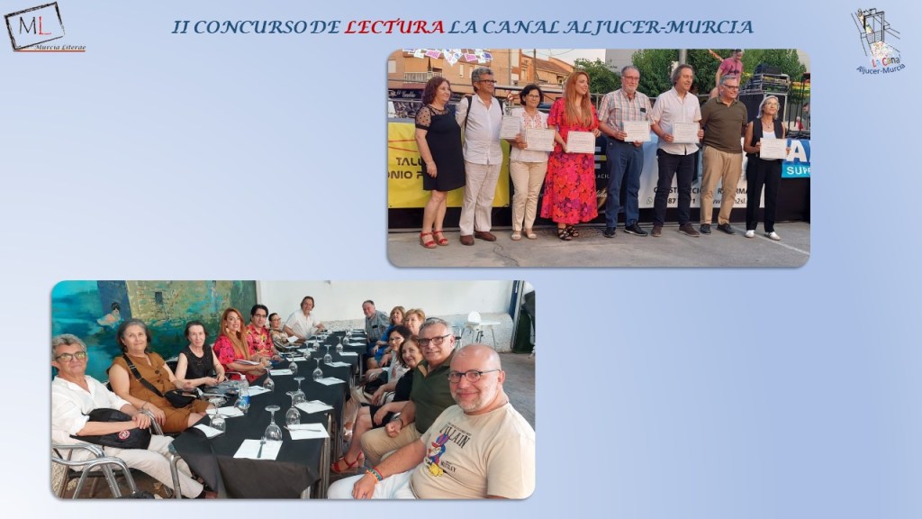 El 23 de junio de 2024 se clausuró el II Concurso de lectura “La Canal” Aljucer-Murcia, organizado por la Asociación Cultural Murcia Literae (ACMUL) y patrocinado por la Junta Municipal de Aljucer.
